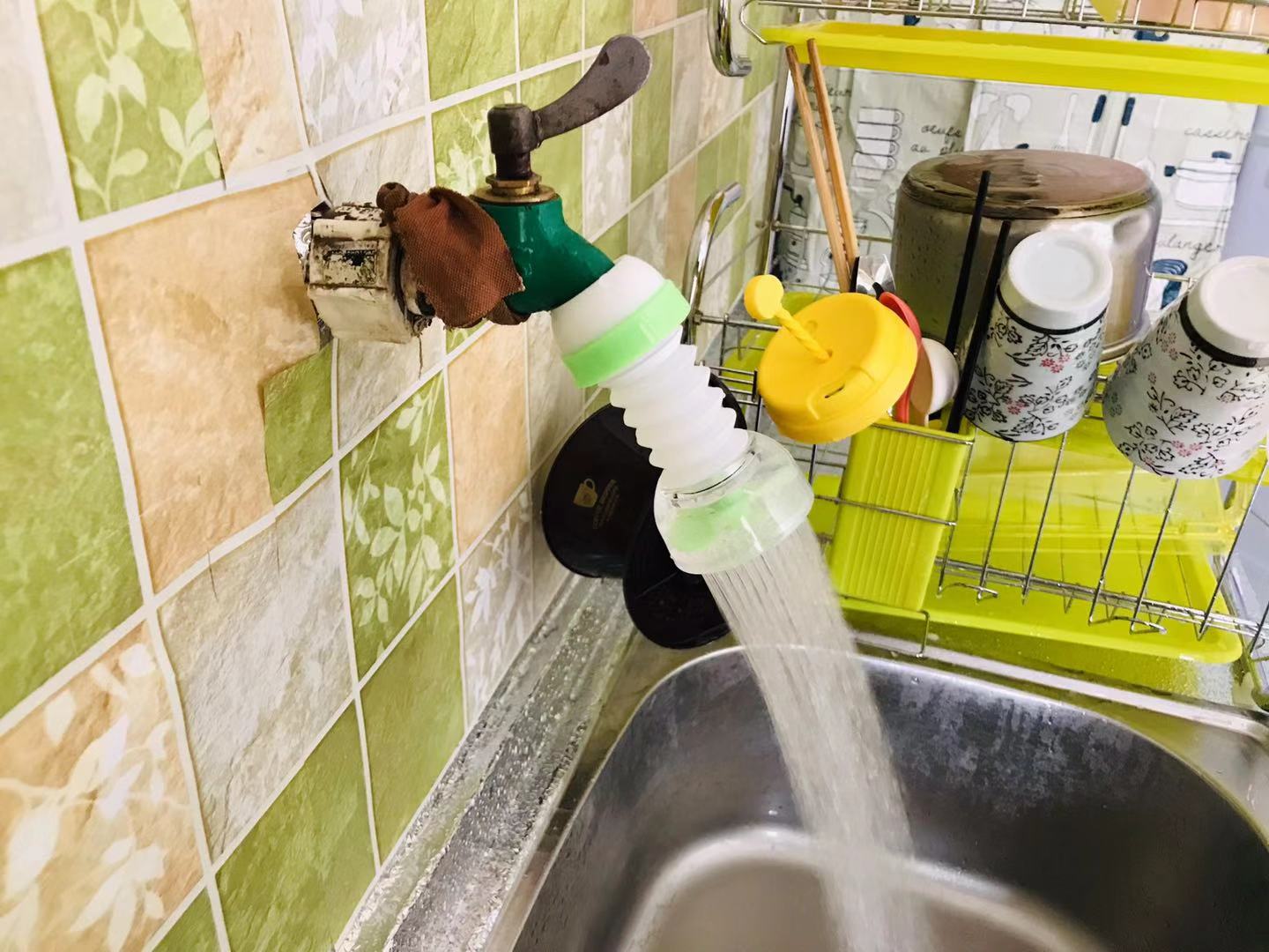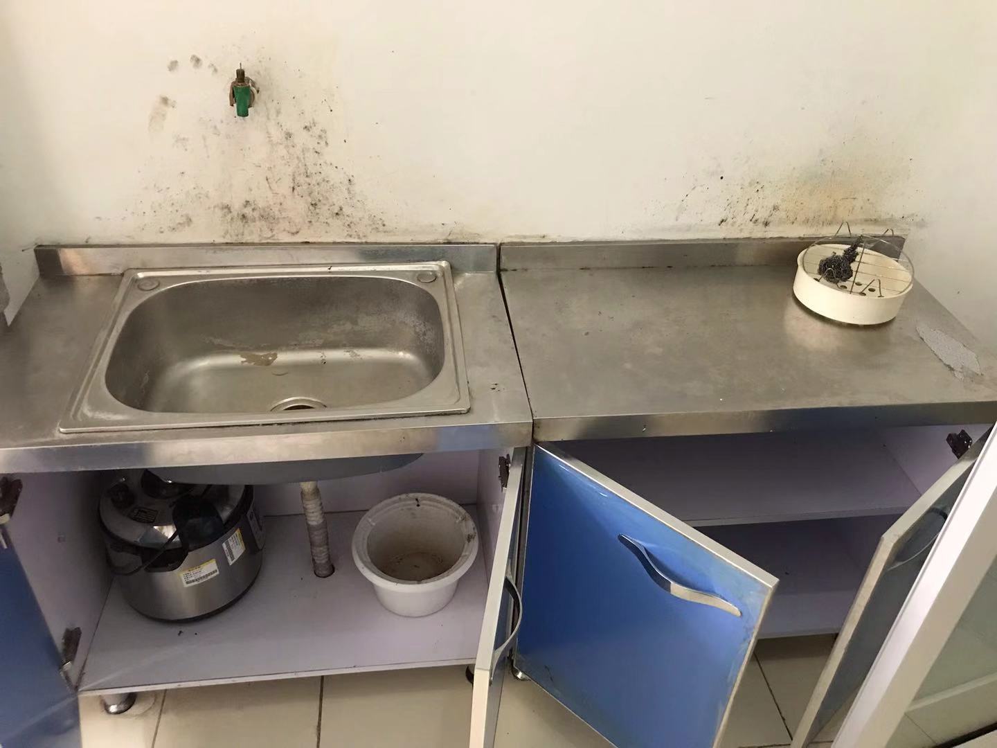 蛇口と壁が近すぎて壁に水がかかり、黒カビが生えていたので、