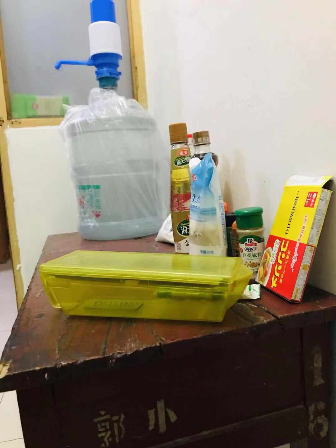 (左)ゴミ袋みたいなビニールをセットして入る謎。