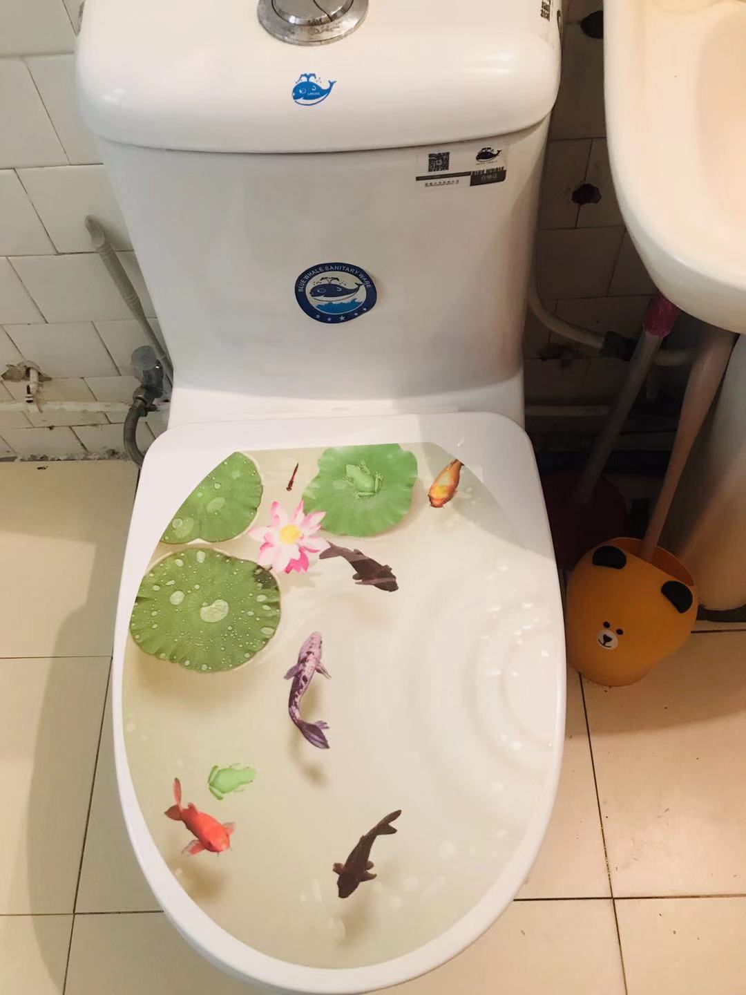 (右)トイレの片隅の熊かわいくないですか?