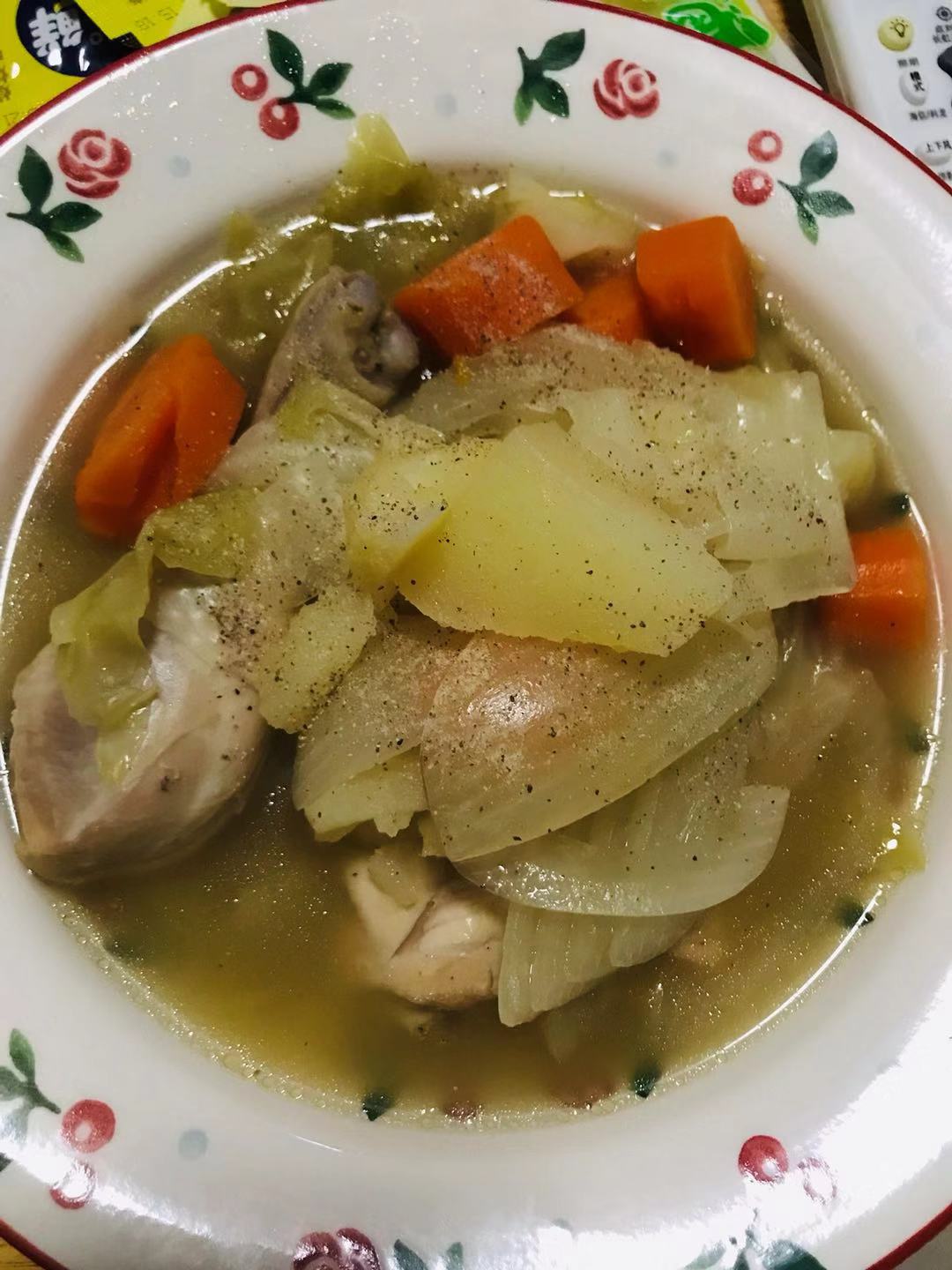 昭和な感じの炊飯器で作ったチキンスープとしいたけのチーズ焼き。
